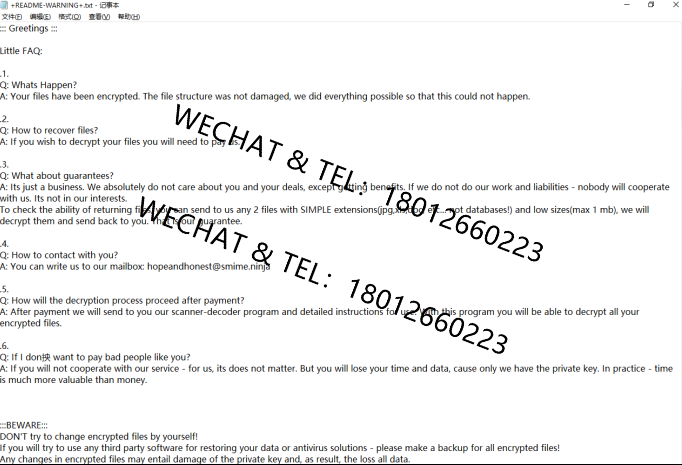 2:所有文件扩展名都被修改为.id[XXXXXX].[hopeandhonest@smime.ninja].mkp