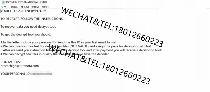 3:被加密的文件夹中有一个RECOVERY INFORMATION.txt 勒索信文件