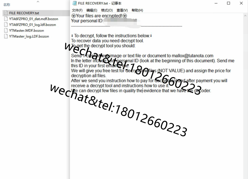 3:被加密的文件夹中有一个FILE RECOVERY.txt 勒索信文档