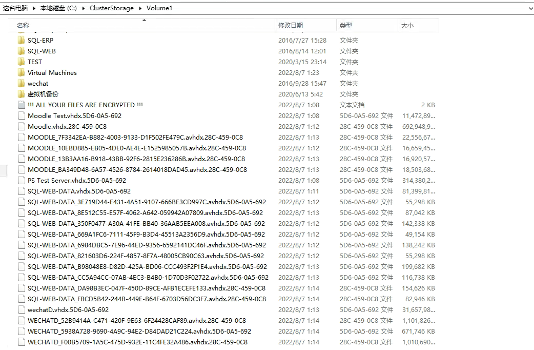 故障类型:四十多台虚拟机被勒索病毒攻击,数据量达到24T