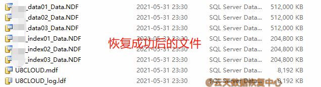 用友U8数据库完美恢复,数据恢复完整度100%,经客户验证,业务系统可正常使用。整个恢复过程耗时1天。如下图: