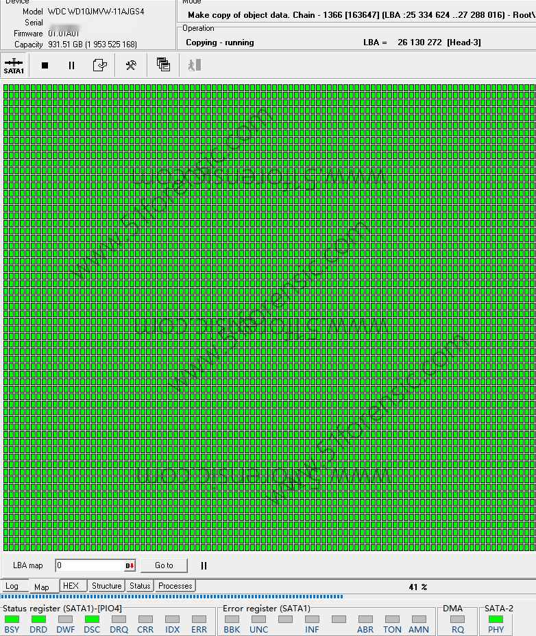 以上型号的相同故障我司已经处理过很多,直接在配件库找到匹配盘体和磁头,进行更换。接专业设备上处理固件后,可以访问到数据。盘片有磨损,优先提取客户重要数据。