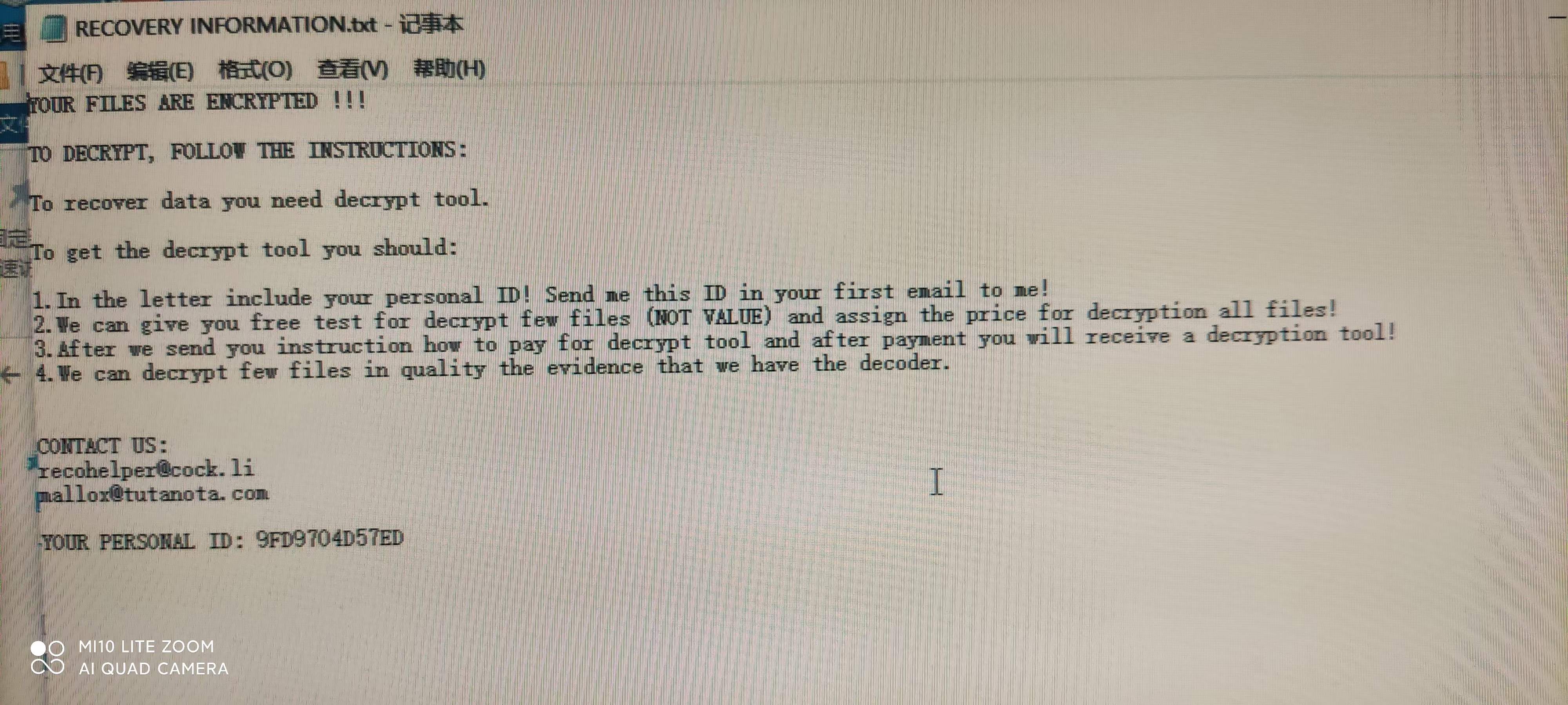2021年11月25日,我司接到青岛某企业的求助电话,称其数据库被勒索病毒加密,后缀被改为mallox,有一个库需要恢复