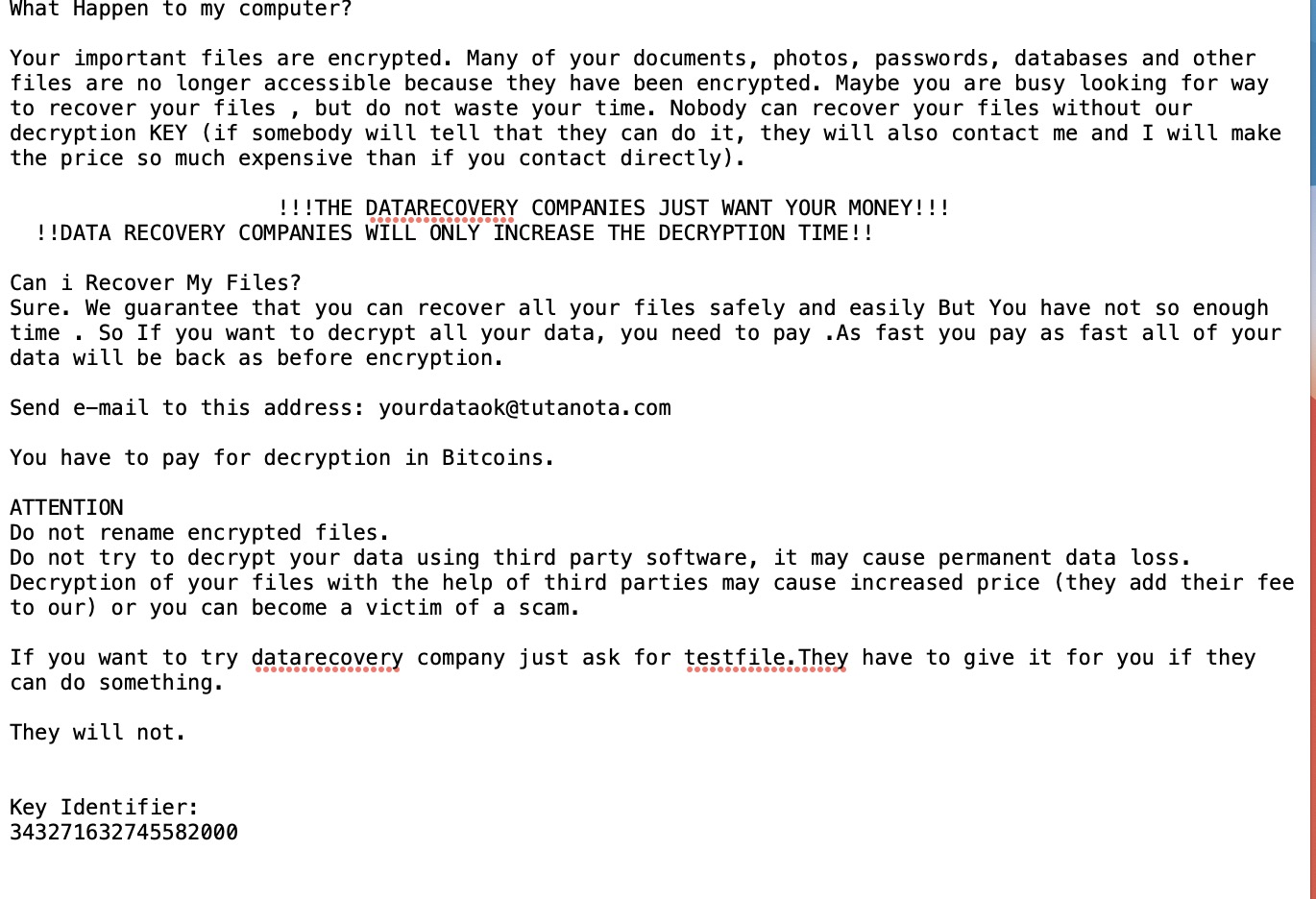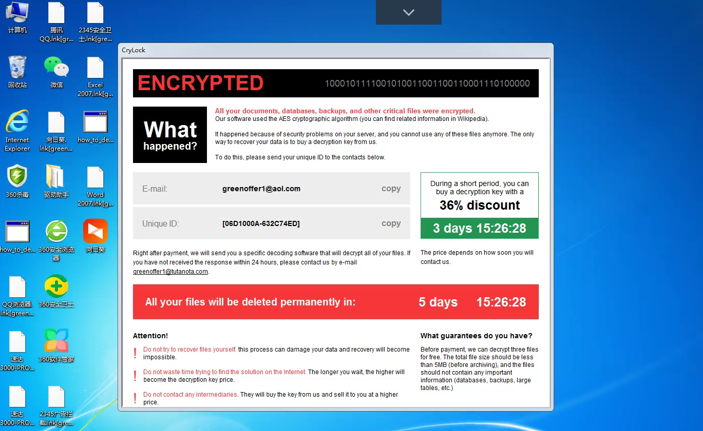 9月28日,我司接到江西某医药连锁企业的求助电话,该企业被crylock勒索病毒组织攻击,数据库文件打不开,后缀被改成了[greenoffer1@aol.com][1].[E8AAC8DE-6C4CE71D]