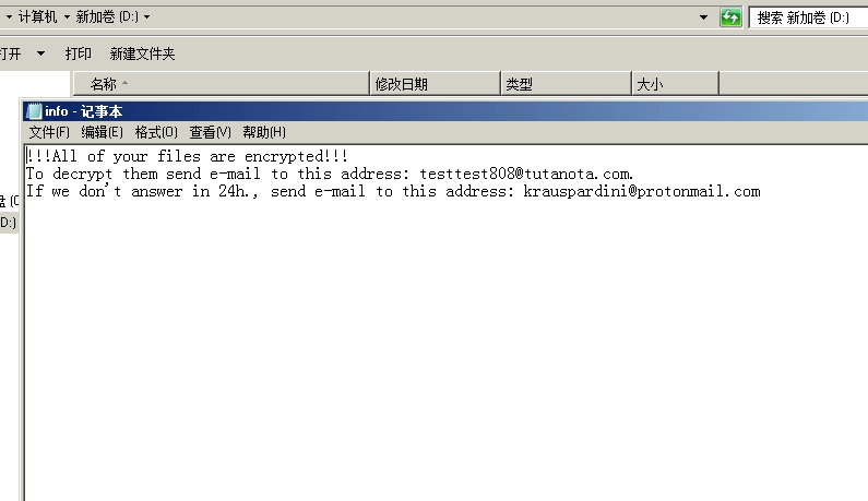 2021年10月10日,我司接到苏州某服装连锁公司的求助电话,该客户称公司服务器被勒索病毒加密,服信通ERP系统的数据库文件被加上了一串后缀,后缀形式为id[xxxxxxxx-xxxx].[testtest808@tutanota.com].eight。