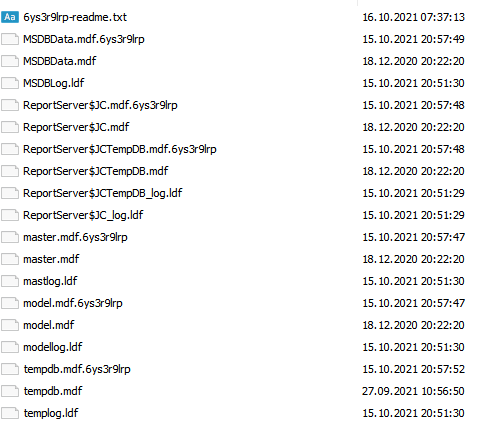 2021年10月26日,我司接到苏州某公司求助电话,客户的虚拟机里的所有文件被勒索病毒攻击,后缀名为6ys3r9lrp。