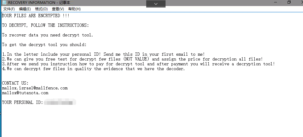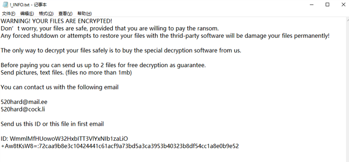 2021年9月28日收到北京客户发来求助,个人电脑被勒索病毒攻击,所有文件全部被加密为后缀hauhitec的文件