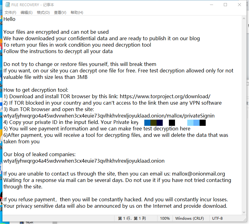 被Malloxx勒索病毒攻击的用户通常是较大型的企业、工厂、商超,以及医院、教育机构等。一旦被攻击,用户的数据就会被加密并被要求支付赎金。如果不支付赎金,黑客通常会威胁将用户的数据公开或删除,这将会对用户造成不可估量的损失。