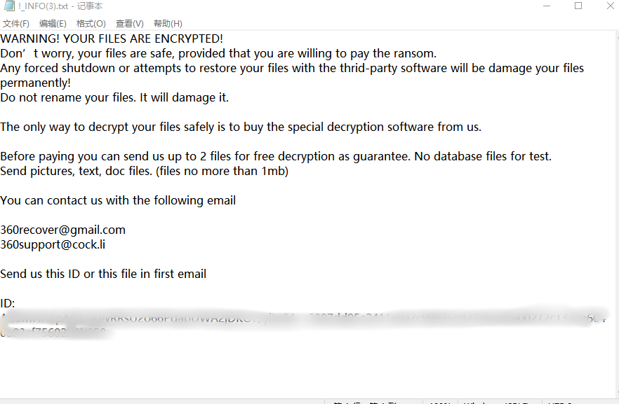 一般来说,当360勒索病毒加密程序加密完成后会进入到休眠状态,或者自己就把自己给删除掉。但并不排除加密程序依然在运行当中,所以当断开网络以后,要先通过任务管理器看看有没有占用运行内存很大的陌生程序,直接将其给终止掉就好。实在不会,可以用360等杀毒软件多杀两遍毒。