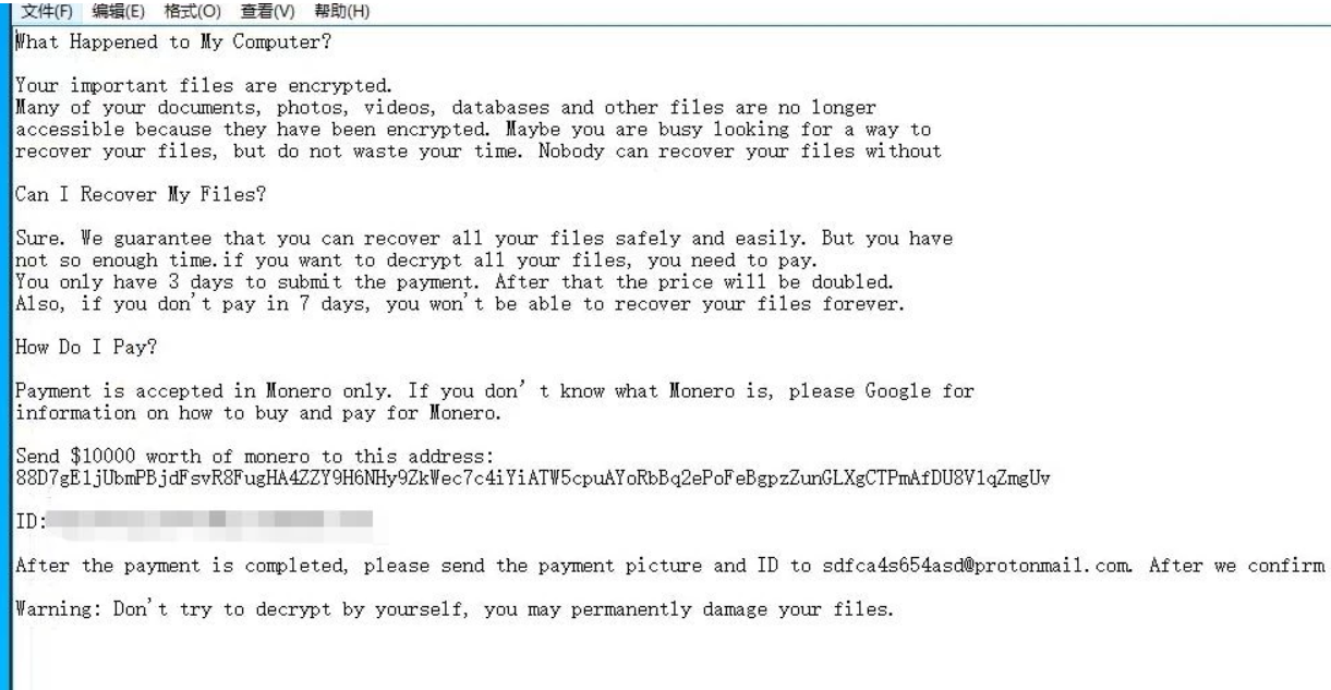 - ,非主动传播,中毒机器所在内网中存在部分机器设置了共享文件夹,单位设置访问权限,导致中毒机器能直接访问到该机器的文件,从而导致文件加密。