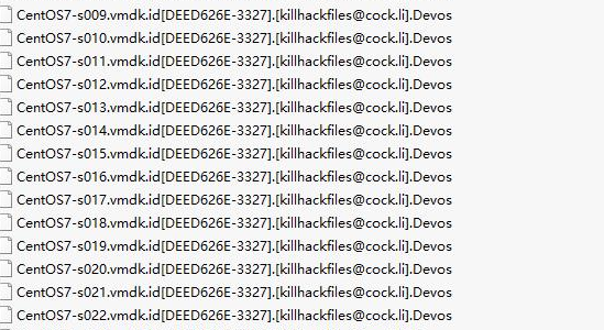 (1)中毒表现,当计算机被devos勒索病毒攻击,我们开机的一瞬间就会弹出来黑客的勒索信,然后发现计算机上的所有文件后缀名都统一改成了.Devos,该病毒会把企业文件的所有后缀名统一修改为原文件名+后缀+id+黑客邮箱.devos的格式。
