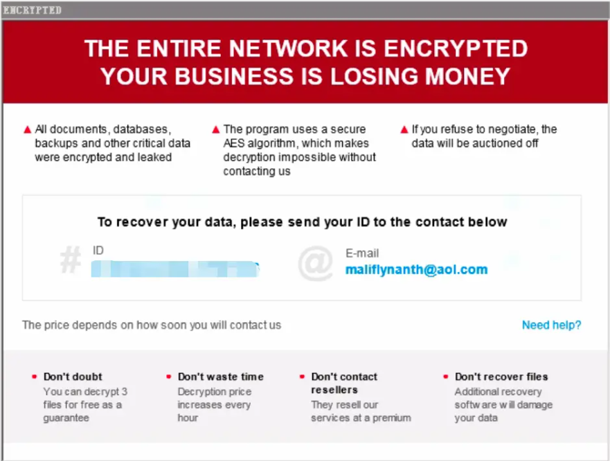 - 中毒影响,企业计算机服务器中了_locked勒索病毒后,会给企业带来严重的经济损失,并且会造成企业重要数据与计算机上的个人数据泄露的风险,严重影响了企业的信誉与口碑,从而影响业务开展。