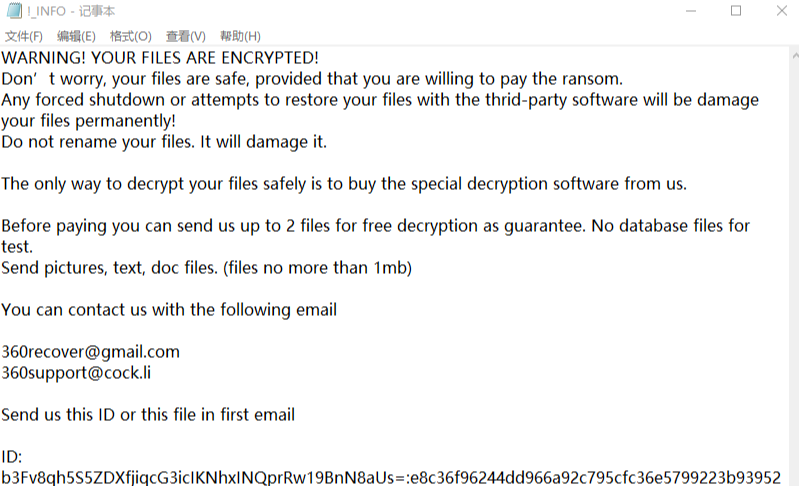 - 中毒表现,计算机服务器被halo勒索病毒攻击后,计算机系统内的所有数据文件都将被加密,并且文件的后缀名统一都会变成halo,并且还会在桌面留有一封!txt的勒索信息。