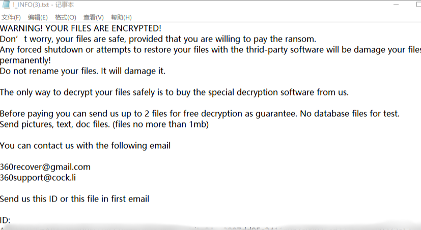 企业计算机服务器在生产运营过程中发挥着巨大作用,为企业带来极大便利,存储着企业的重要核心数据,但同时也成为众多勒索病毒攻击的目标。近期,云天数据恢复中心接到很多企业的求助,企业的计算机服务器遭到了360后缀勒索病毒攻击,该勒索病毒具有较强的攻击与加密能力,加密的文件几乎全部都是全字节,为后期的解密恢复带来了极大困难。经过云天数据恢复中心对360后缀勒索病毒的解密,为大家整理了以下有关360后缀勒索病毒的应对流程。