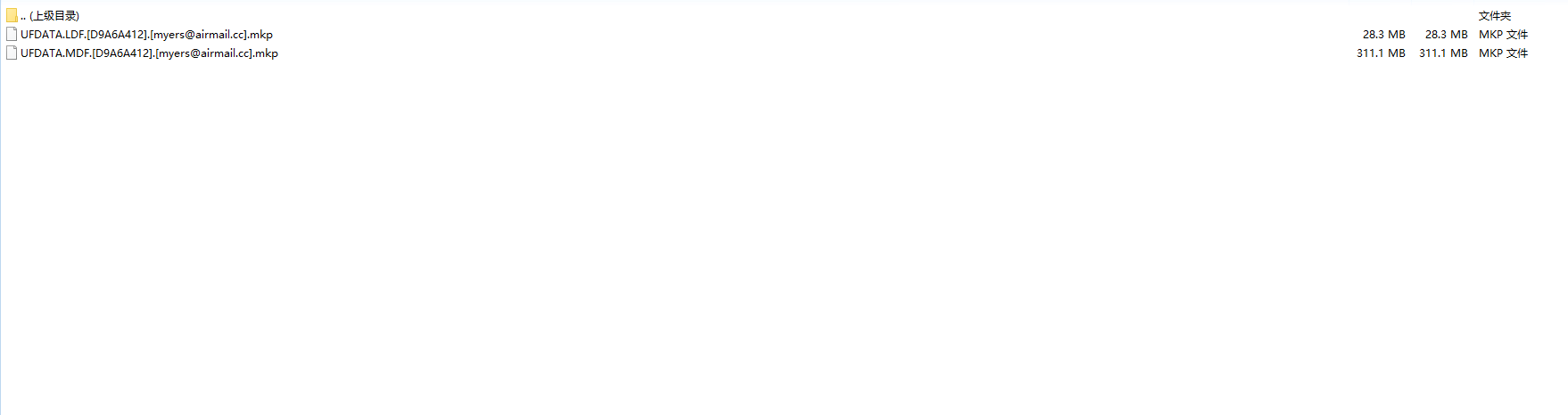 - 攻击表现,当企业计算机服务器被mkp勒索病毒攻击后,企业计算机上的所有文件与软件均无法正常打开使用,并且所有文件的后缀名都会变成统一的格式,像jiemihuifu。Mdf文件就会变成mdf.[企业计算机ID].[黑客邮箱].mkp。