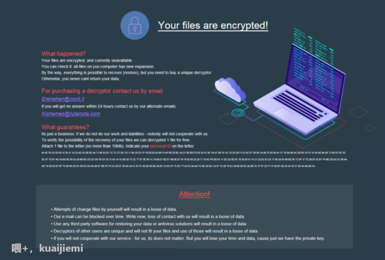 近期收到很多公司的求助,公司的NAS服务器遭受到了勒索病毒攻击,导致系统内的文件被加密无法访问需要快速对勒索病毒解密,对服务器进行数据恢复工作,经过专业数据恢复工程师的分析检测,目前攻击NAS系统的主要病毒为encrypted勒索病毒。Encrypted勒索病毒可以利用NAS系统本身的漏洞问题入侵,从而对系统进行加密,由于encrypted勒索病毒的加密算法原因,被攻击的系统一般很难自行解密,建议大家选择专业的数据恢复工程师团队进行勒索病毒解密恢复。云天数据恢复中心拥有资深多年的专业数据恢复团队,可以对各种服务器数据库进行数据恢复,对多种后缀的勒索病毒,尤其是encrypted勒索病毒有着丰富的解密经验,数据恢复快速高效,恢复完整度高,确保数据安全。V+:kuaijiemi