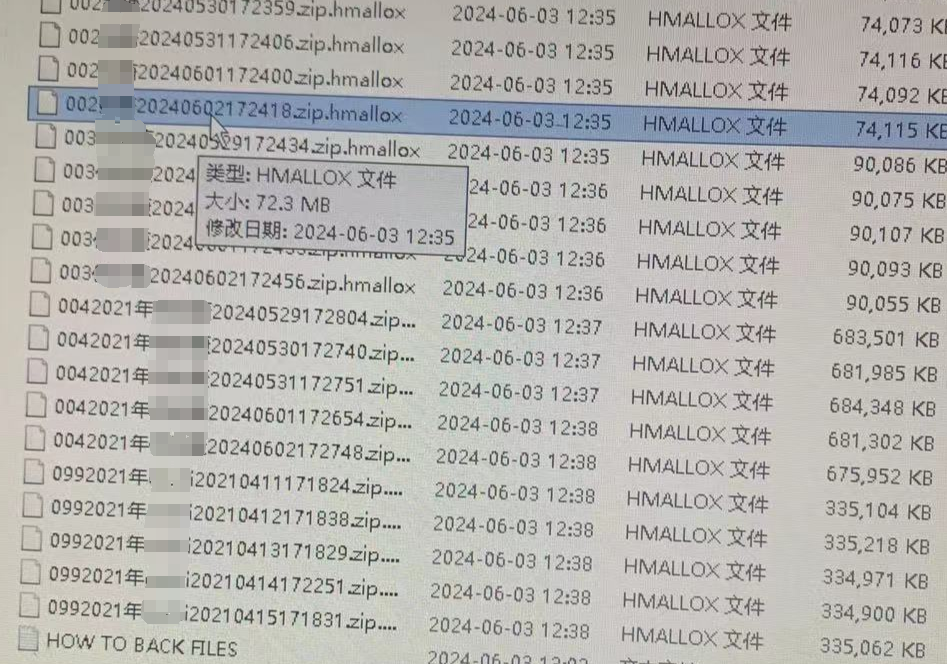 - 中毒表现,计算机服务器被rmallox勒索病毒攻击后,计算机服务器器几乎处于瘫痪的状态,所有的文件软件均无法正常打开使用,所有文件的后缀名统一变成了rmallox,像mdf文件就会变成jiemihuifu.mdf.rmallox,并且还会在计算机桌面留下一封名为HOW TO BACK FILES.txt勒索信。