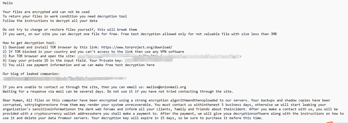 - 攻击后果,mallox勒索病毒会企业带来严重的经济损失,大多在2000+美金不等,并且还会造成企业重要核心数据泄露的风险,使得企业业务工作中断,给企业的信誉与口碑带来恶劣的影响。